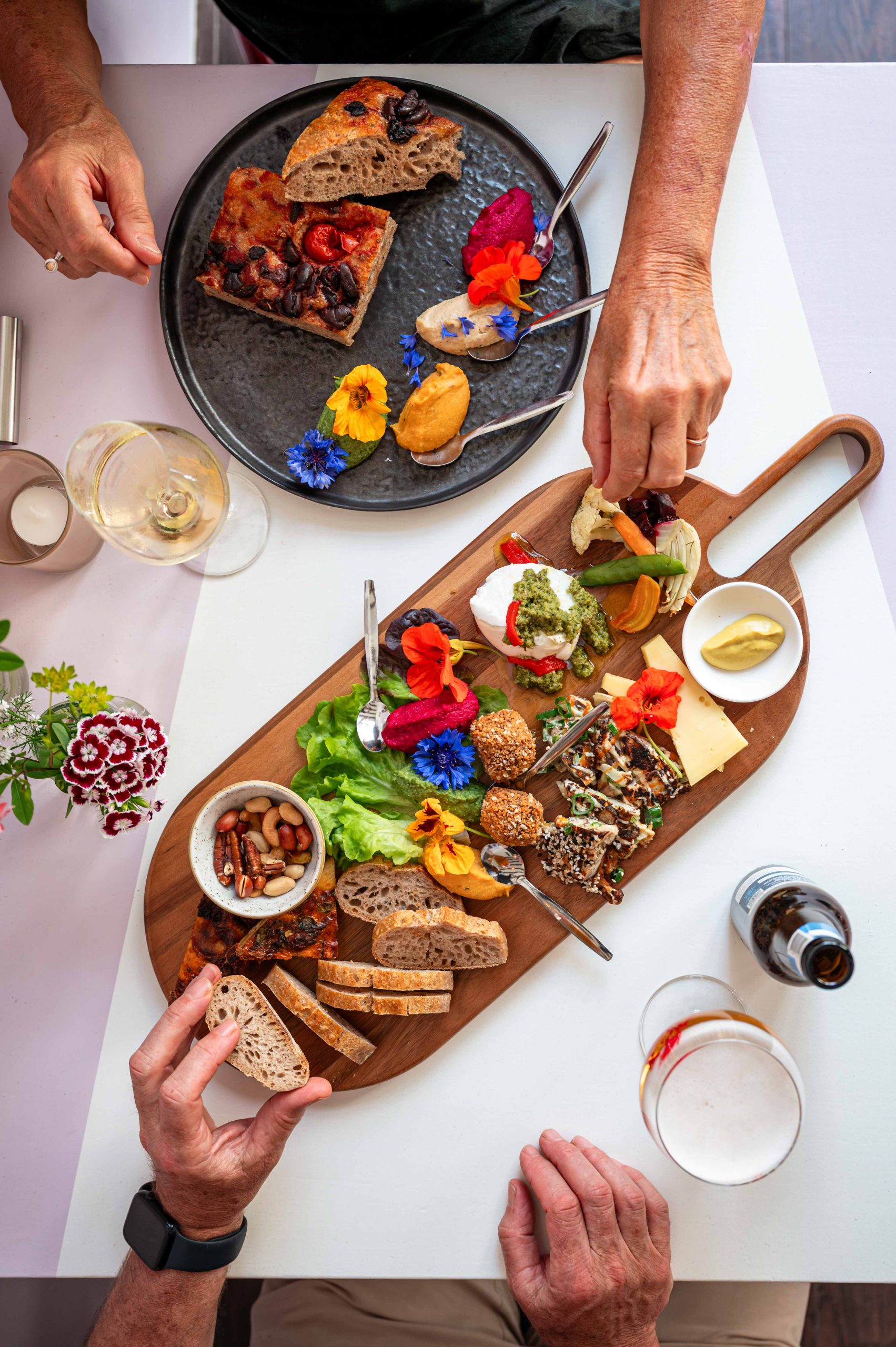 Liever iets te snacken? Dan is onze borrelplank een goede keuze. Dit zijn planken met huisgemaakte lekkernijen die variëren. Hierbij kun je denken aan brood met dips, verschillende kazen, nootjes en andere lekkere dingen.